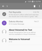 1. From the Visual Voicemail Inbox, tap the menu icon next to "Inbox" or place your finger on the left edge of the screen and swipe to the right.