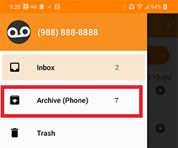 1. From the Visual Voicemail Inbox, tap the menu icon