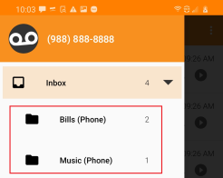4. Tap OK. The new folder is added as a sub-folder of the Inbox. To view custom folders, tap the arrow next to the Inbox as shown here: