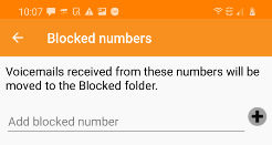 3. Tap Voicemail blocking to display the Blocked numbers screen.