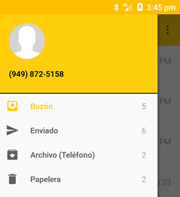 La barra de título muestra el buzón activo. Para abrir el menú principal, seleccione el icono del menú al lado de "Buzón" o coloque su dedo en el borde izquierdo de la pantalla y desliza el dedo hacia la derecha.