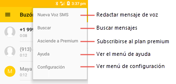 Nota: Si está suscrito al servicio Premium o la versión de prueba, los mensajes de voz se transcribirán en el buzón.