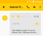 Toque el botón de reproducción para escuchar el mensaje. Si está suscrito al servicio Premium la transcripción aparece debajo de la pantalla de reproducción.