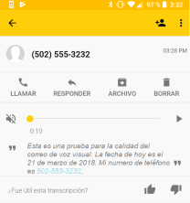 para escuchar el mensaje. Si está suscrito al servicio Premium la transcripción aparece debajo de la pantalla de reproducción.