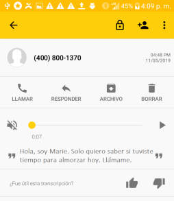 para escuchar el mensaje. Si está suscrito al servicio Premium la transcripción aparece debajo de la pantalla de reproducción.