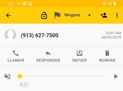 4. La nota se elimina y el indicador de la bandera amarilla cambia a gris en la pantalla de Reproducción de mensajes. El indicador de nota amarilla también se elimina del mensaje en las carpetas Buzón, Bloqueados o Papelera.