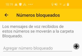 Puede crear una lista de números de teléfono bloqueados para redirigir mensajes de voz de esos números, a la carpeta de los Bloqueados automáticamente. Mensajes de voz desde un número bloqueado, no generan un sonido ni una notificación visual.