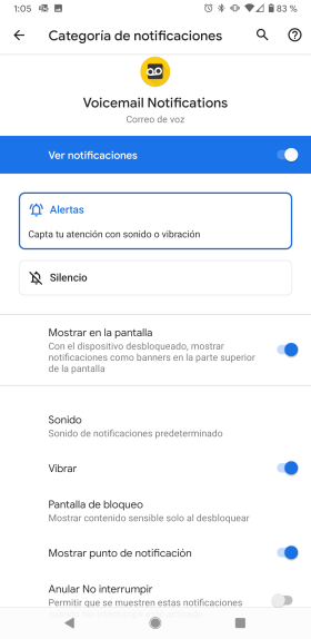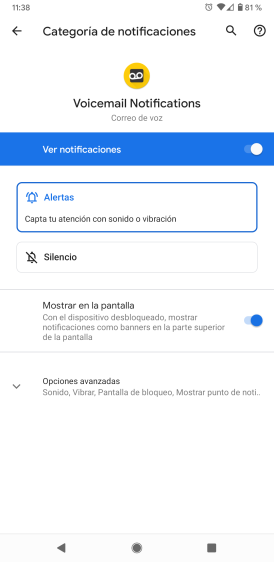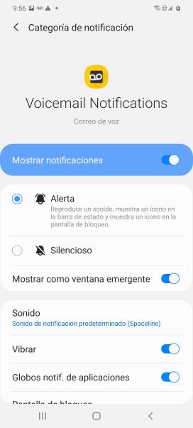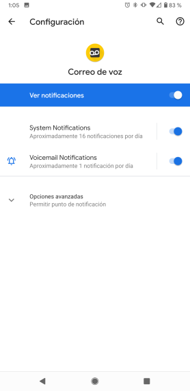 1. Ir a la Configuración > Apps > Voicemail > Notificaciones.