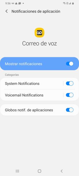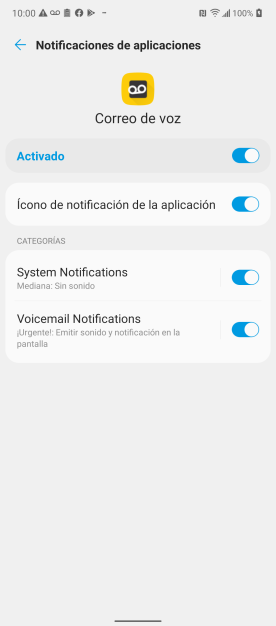 1. Ir a la Configuración > Apps > Voicemail > Notificaciones de aplicación.