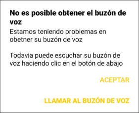 Este mensaje ocurre cuando la aplicación de Correo de Voz Visual no se puede comunicar con el servidor de VVM y usted dejó de recibir mensajes.