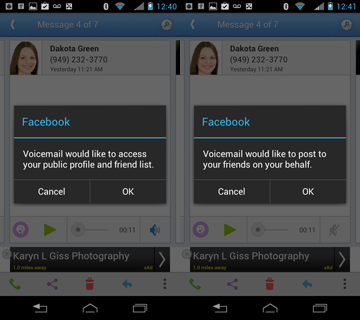 You can share avatar messages on your Facebook wall. When you share a message, your post contains a link to the message on the Visual Voicemail server, and any additional comments you'd like to include.