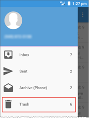 Note: You can set the frequency at which the application empties the trash folder in Settings > Preferences > Delete Messages. If you want to manually manage your Trash folder, you should configure the setting to "Never" delete messages in the Trash folder. The Trash folder can store up to 150 messages.