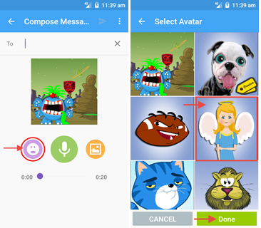 2. In the Compose Message screen, select an avatar and a background. To change the avatar, tap
