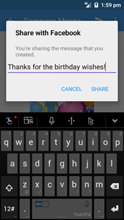 2. Next, you may be prompted to sign into your Facebook account. After you sign in, the Share with Facebook screen appears. If you wish, type a comment to include with the post. Then tap Share.