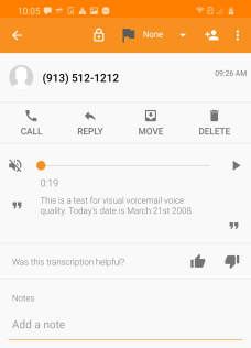 to listen to the message. If you are subscribed to Premium service, the transcription appears below the playback controls.