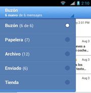 La barra de título muestra el buzón activo. Para cambiar a una carpeta diferente, toque en la barra de título y selecciónelo de la lista.