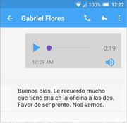 El mensaje se reproducirá automáticamente. Si está suscrito al servicio Premium la transcripción aparece debajo de la pantalla de reproducción.