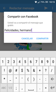 Note: Antes de compartir un mensaje a Facebook, debe tener la aplicación de Facebook instalada en su teléfono y se han conectado a su cuenta de Facebook desde su teléfono. No verá la opción Compartir vía Facebook hasta que haya hecho esto.