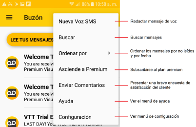 Nota: Si está suscrito al servicio Premium o la versión de prueba, los mensajes de voz se transcribirán en el Buzón.