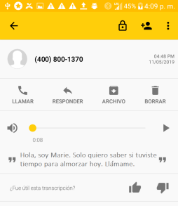 para escuchar el mensaje. Si está suscrito al servicio Premium la transcripción aparece debajo de la pantalla de reproducción.