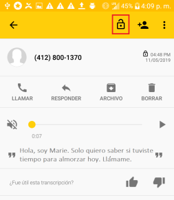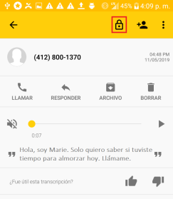 Desbloqueo de un mensaje desde la pantalla de reproducción de mensajes