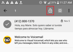 Nota: Cuando se seleccionan varios (o todos) mensajes, aparecen bloqueos dobles (abiertos y cerrados) si se seleccionan los mensajes guardados y no guardados. Al tocar el icono de candado abierto, se borra el estado guardado permanentemente de todos los mensajes seleccionados. Al tocar el icono de candado cerrado se guardan permanentemente todos los mensajes seleccionados.